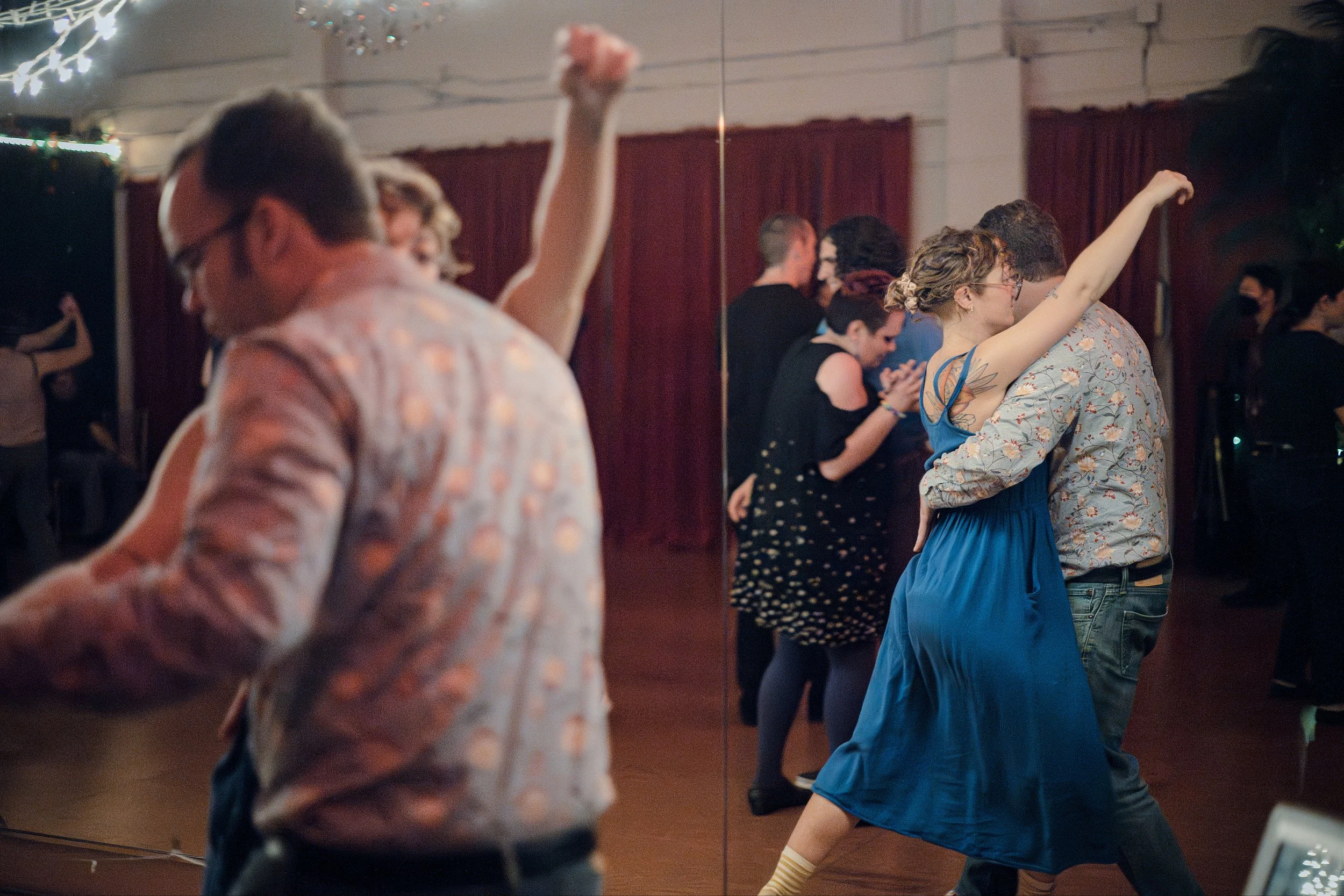We have two rooms for dancing 8p-12:30a. Downstairs in the main room, masks are not required. Upstairs, there is a masks required room for those who need a covid safe environment.